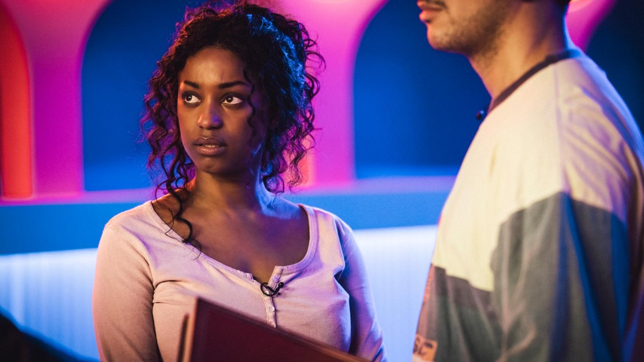Threatened with deportation, an immigrant couple takes part in a game show offering residence permits.